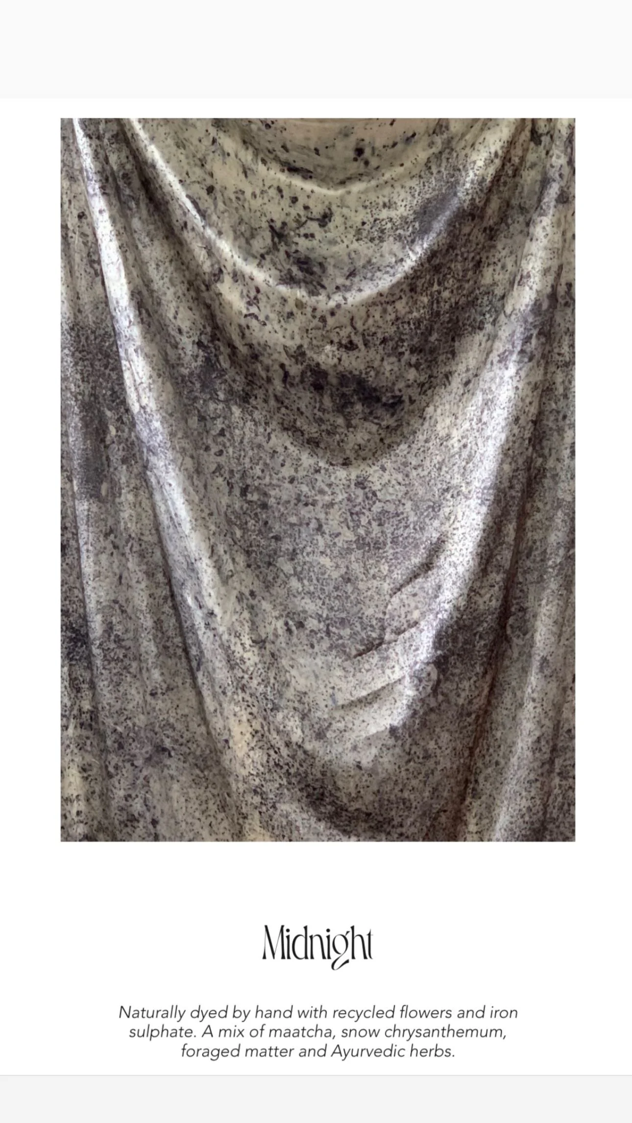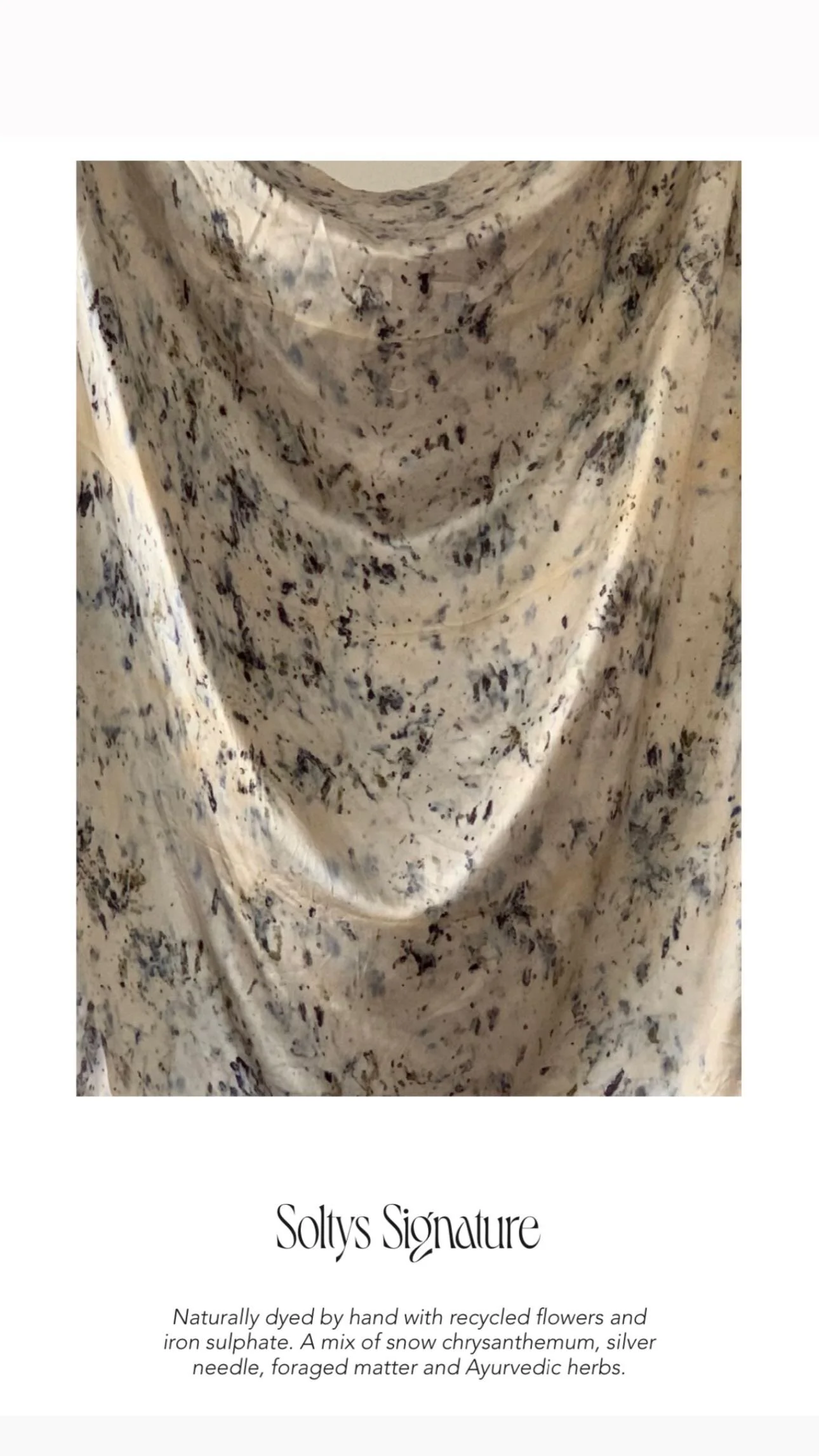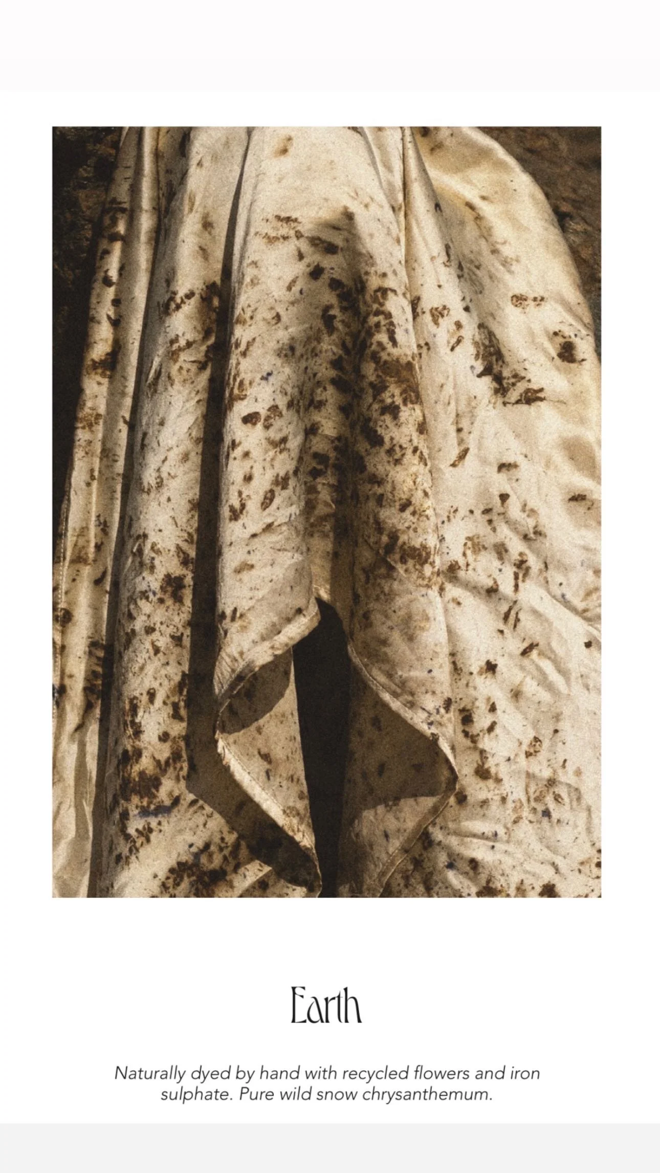 Each piece is handmade and dyed by hand, crafted from 100% organic silks using sustainable, regenerative practices, and inspired by the raw materials that shape them.